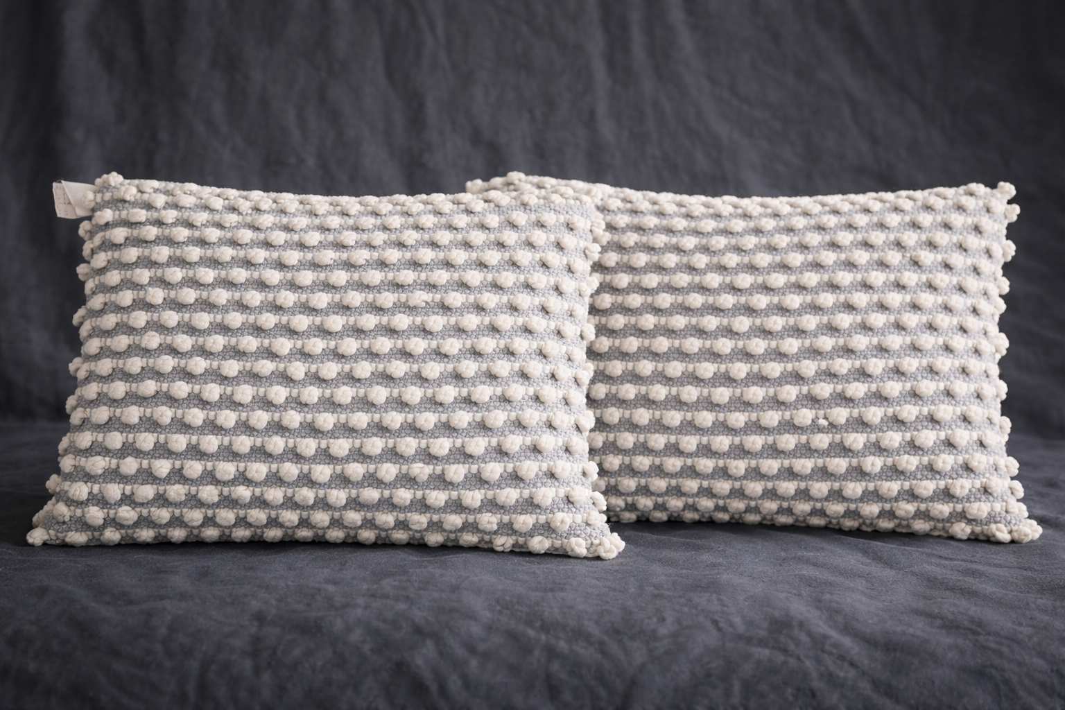 Add effortless elegance to your living space with this set of 2 rectangular textured cushion covers. Crafted in a soothing grey base with delicate cream pom-pom detailing, these cushion covers bring warmth, depth, and a handcrafted charm to sofas, armchairs, and reading nooks. The premium woven fabric highlights fine craftsmanship while the neutral palette blends seamlessly with modern, boho, and contemporary interiors. Perfect for everyday styling or festive décor upgrades, these cushion covers elevate your home with subtle luxury and comfort.